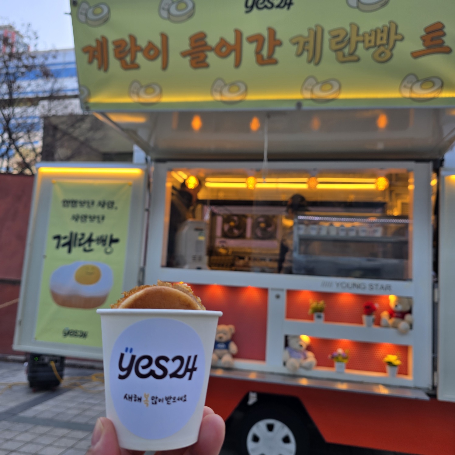 노란 조명이 반짝이는 푸드트럭 앞에서 김이 모락모락 나는 계란빵을 한 입 베어 무니, 올겨울 추위가 한순간에 녹는 기분이었답니다.
