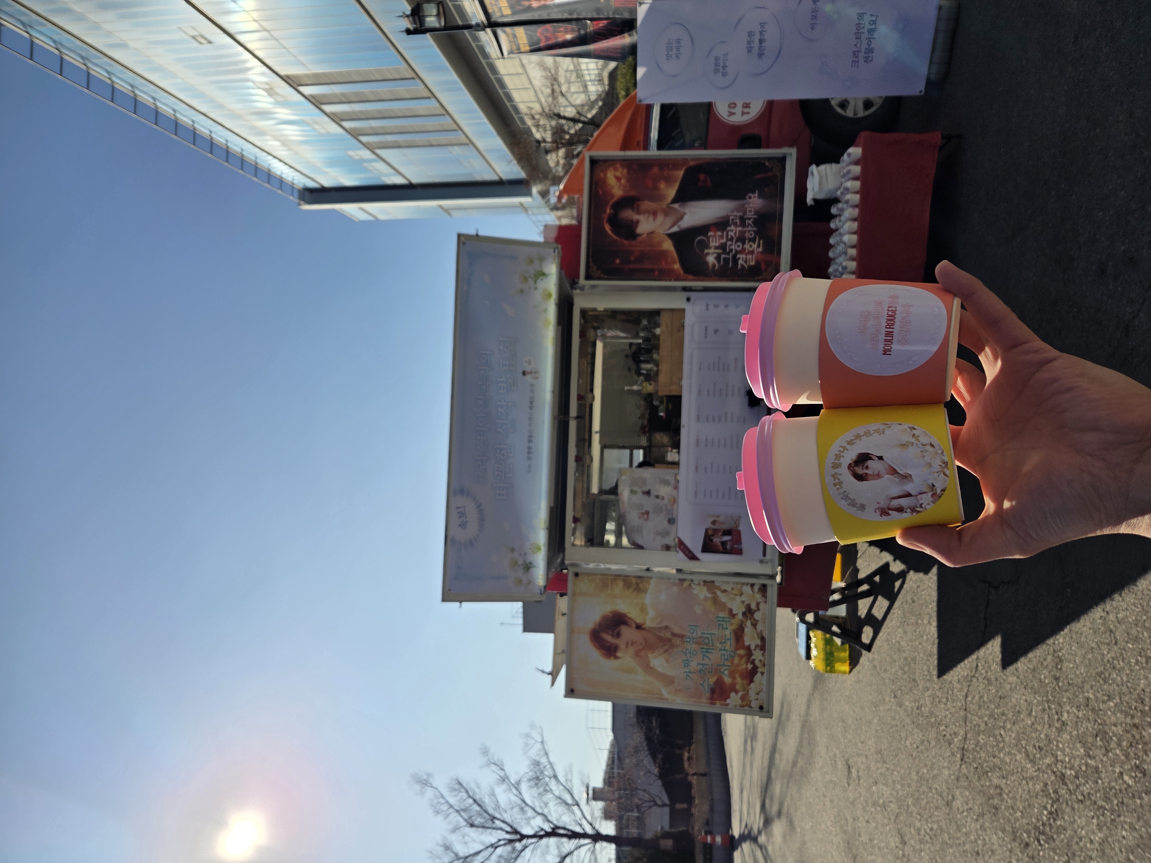 멀리서도 배우님의 미소가 담긴 예쁜 커피차가 눈에 띄었는데요. 여기에 따끈따끈한 계란빵 푸드트럭까지!
