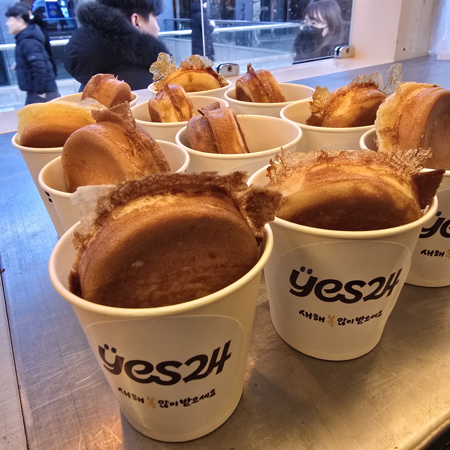 겨울철 대표 간식인 계란빵과 깊은 풍미의 커피가 준비되어 있어 많은 분이 줄을 서서 기다릴 정도로 인기가 정말 뜨거웠어요.